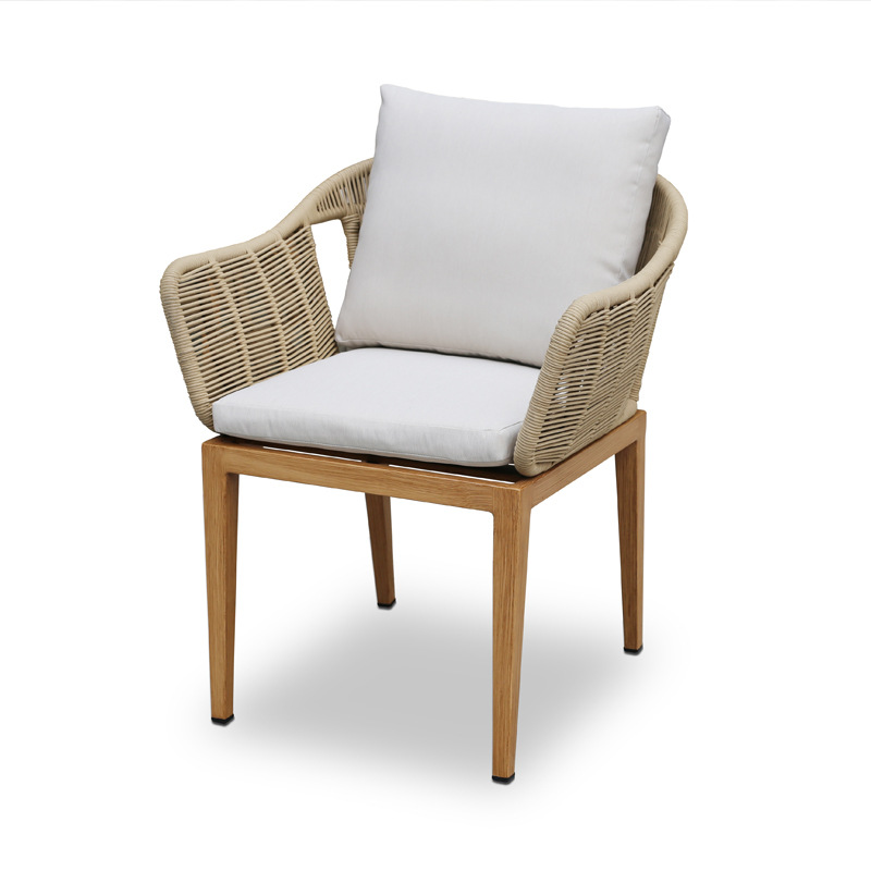 The ergonomic design supports the body and offers comfortable seating for long dining sessions. Water-resistant cushions enhance comfort, making it ideal for both casual and formal outdoor meals. The lightweight yet sturdy design allows businesses to arrange multiple units efficiently for large hospitality projects or bulk orders.