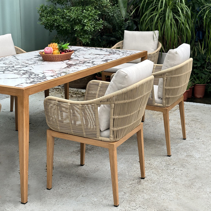 Kury designs this Rope Dining Set for commercial and residential outdoor dining spaces, including hotel terraces, resorts, patios, gardens, and private villas. The set features a durable powder-coated aluminum frame combined with high-quality outdoor rope surfaces, providing strength, stability, and excellent weather resistance.