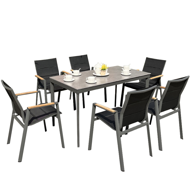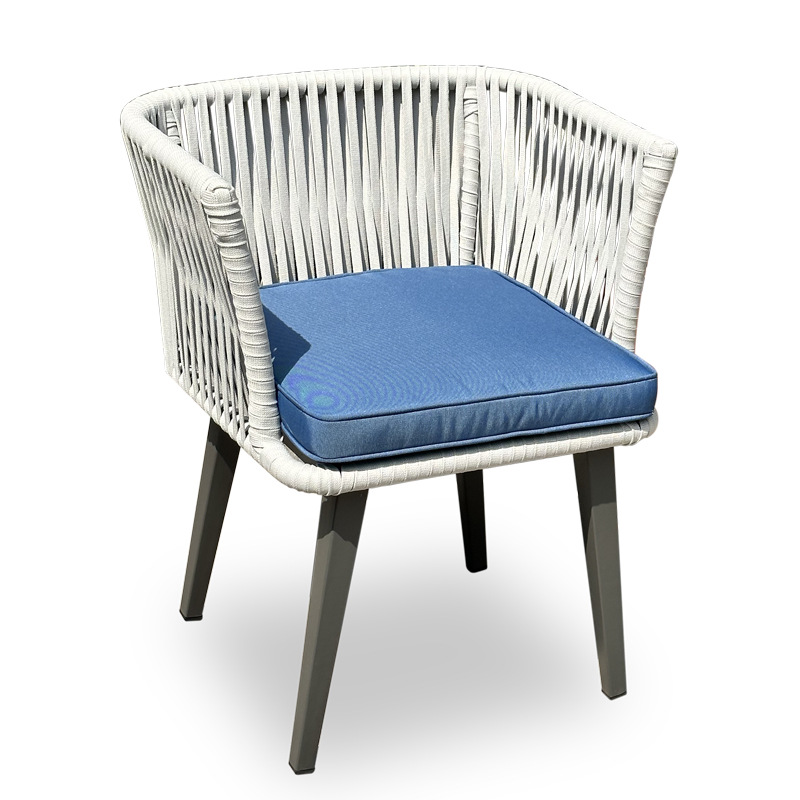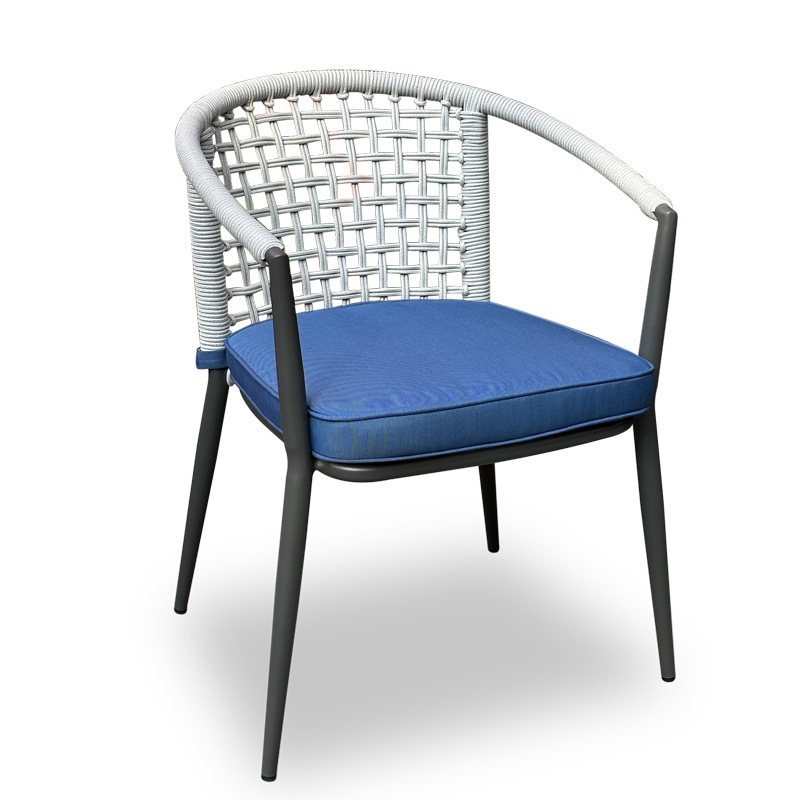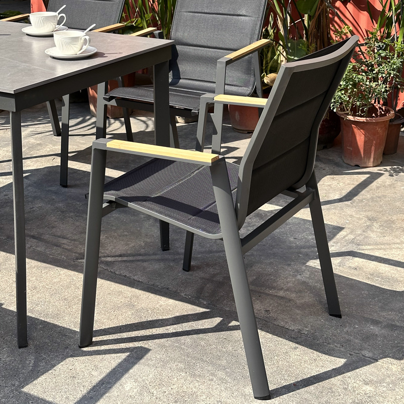 The ergonomic design supports the body and provides comfortable seating for extended dining sessions. Water-resistant cushions enhance comfort, making it ideal for both casual and formal outdoor meals. The lightweight yet sturdy design allows easy arrangement for large hospitality projects or bulk orders.