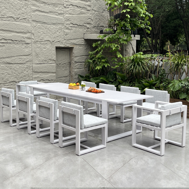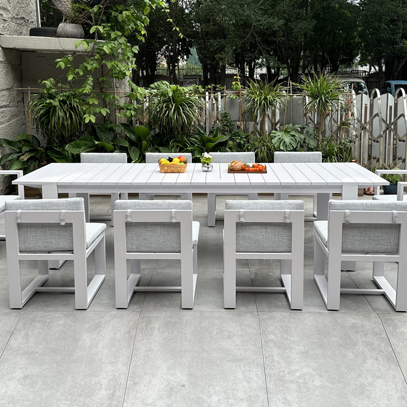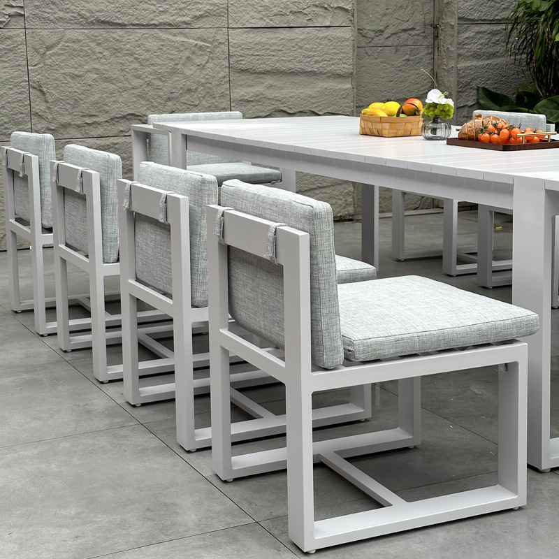 Kury builds these metal patio dining sets using powder-coated aluminum and premium materials. Moreover, the sturdy frames give strong support, letting businesses arrange tables and chairs confidently in outdoor areas.